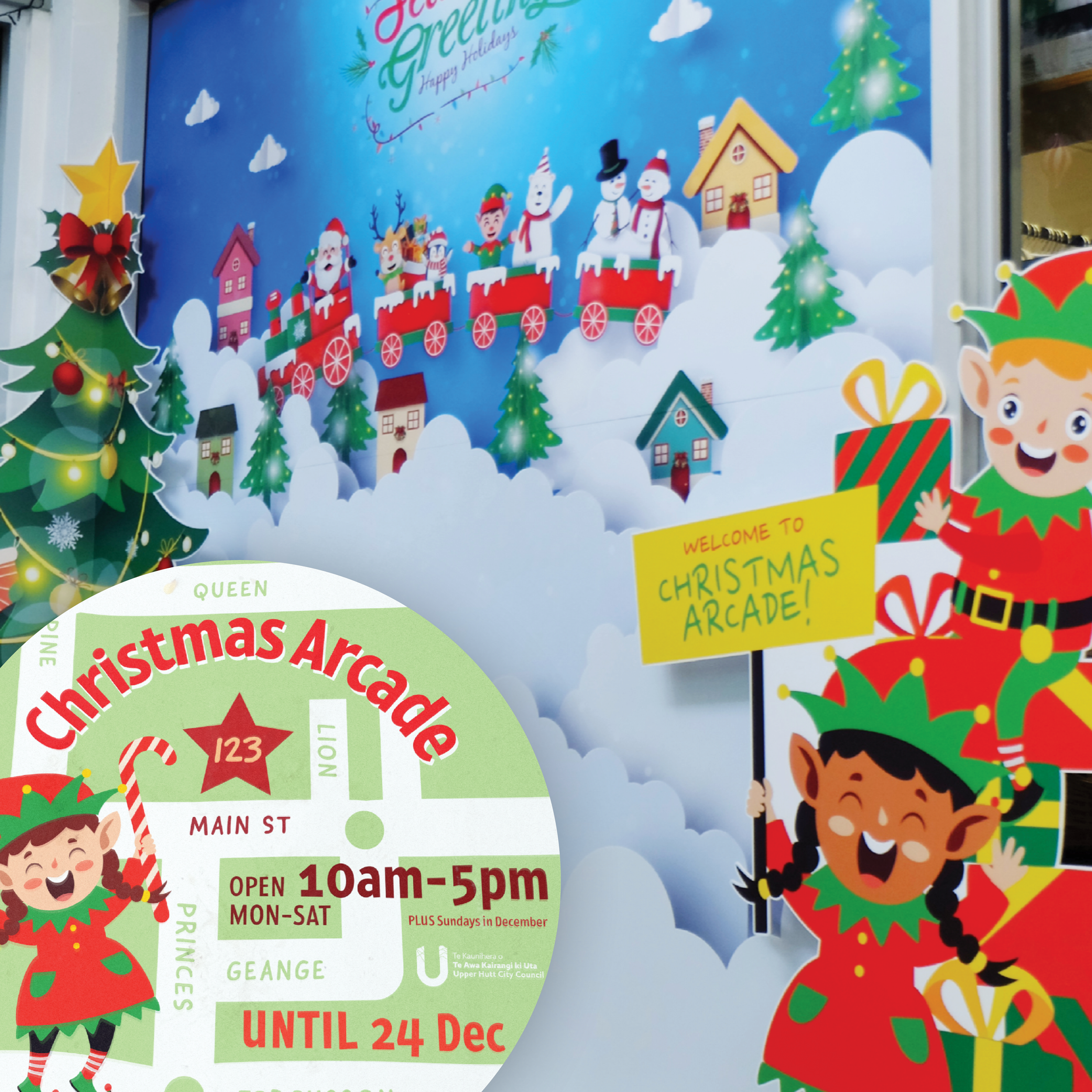 Upper Hutt City Council spruced up City Arcade and renamed it Christmas Arcade for the month of December. It was our pleasure to jump in and help with way finding, signage, large scale decorations and a North Pole-themed selfie backdrop. Providing a range of solutions for a variety of requirements was second nature for the Tailwind team.