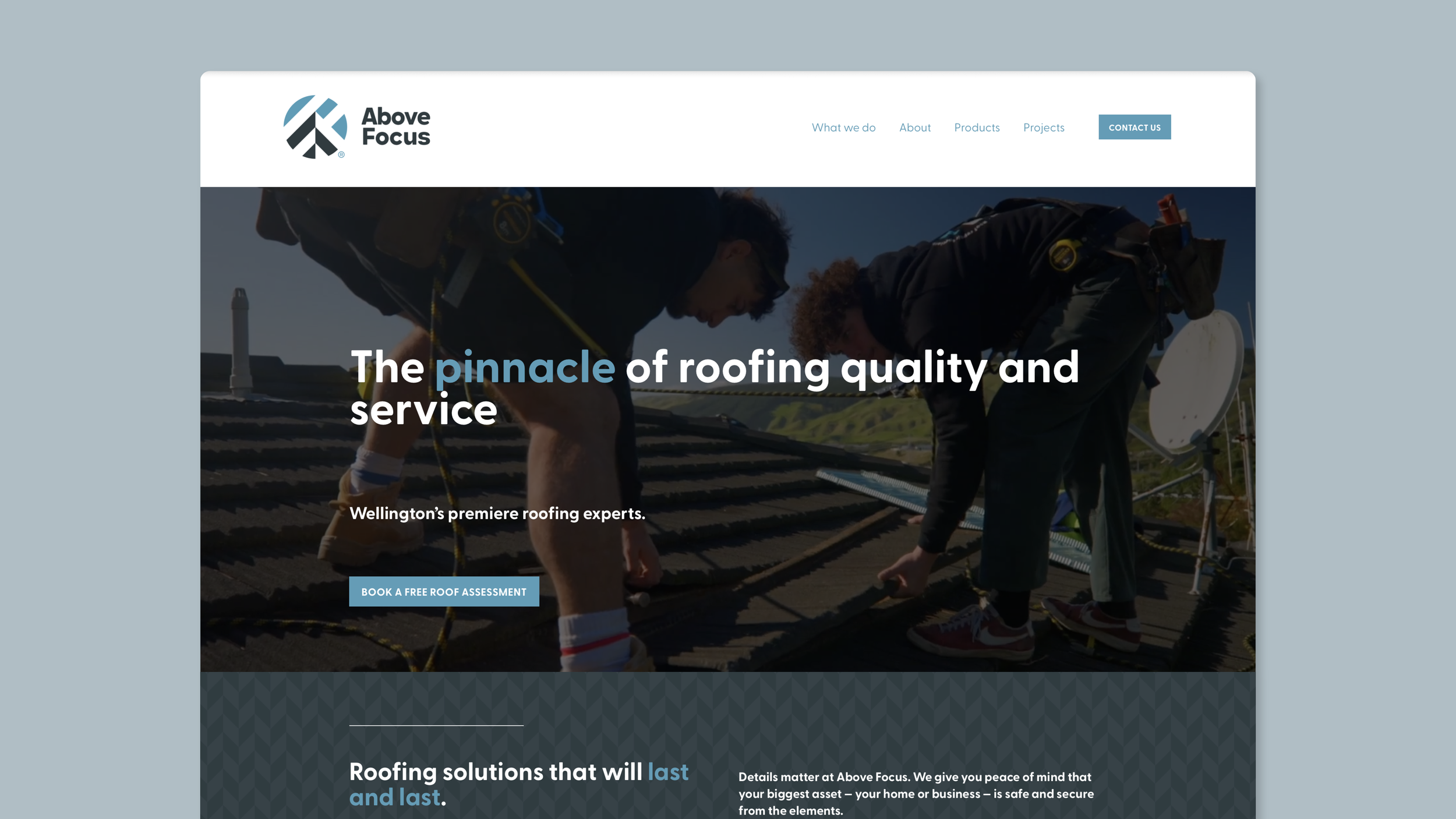 Branding, website design and copywriting for local roofing company, Above Focus